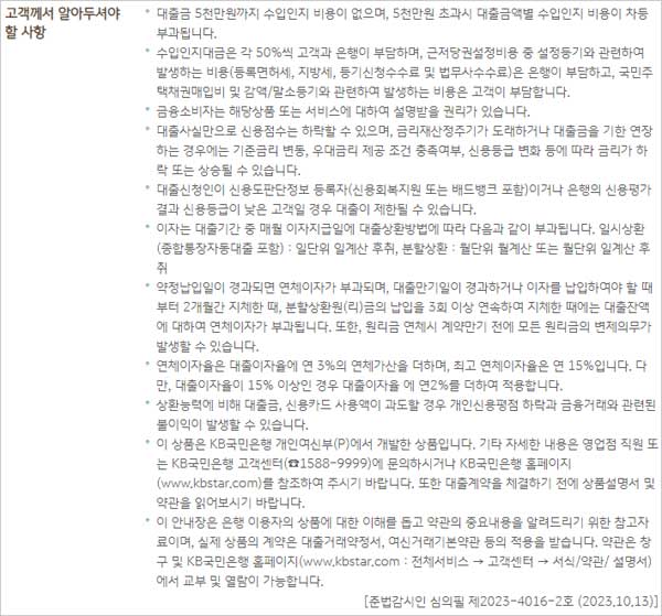 ▶ 대출 유의사항으로는