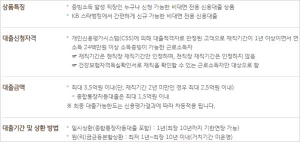 개인신용평가시스템(CSS)에 의해 대출적격자로 판정된 분으로 재직기간이 1년 이상이면서 연소득 2천 4백만원 이상 소득증빙이 가능한 근로소득자라고 합니다.