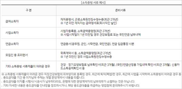 [소득증빙 서류 예시]