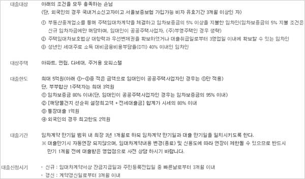 ▶ 대출 기간은 임차계약 만기일 범위 내 최장 3년 1개월로 하되 임차계약 만기일과 대출 만기일을 일치시키도록 하며