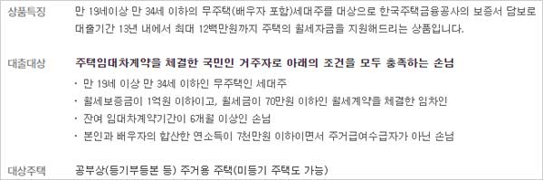 만 19세이상 만 34세 이하의 무주택(배우자 포함)세대주를 대상으로 한국주택금융공사의 보증서 담보로 대출기간 13년 내에서 최대 1천2백만원까지 주택의 월세자금을 지원하는 상품인 하나은행 하나청년월세론 청년 월세 보증금 대출 상품은 하나은행 홈페이지에서 소개하고 있습니다. 참고해 관련 내용 알아보도록 하겠습니다.