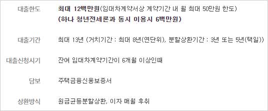 ▶ 담보는 주택금융신용보증서이며 ▶ 하나은행 하나청년월세론 대출 중도상환 수수료 해약금은 없다고 합니다. ▶ 대출신청시기는 잔여 임대차계약기간이 6개월 이상인때라고 합니다.