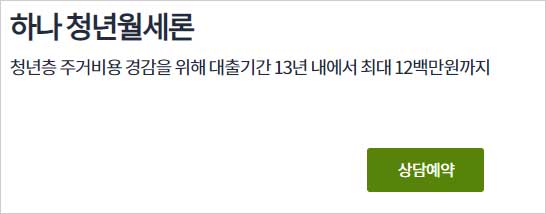 ▶ 하나은행 하나청년월세론 대출 신청 대상 자격 조건은 다음과 같다고 합니다.
