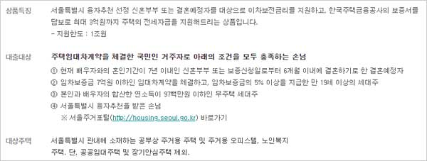▶ 하나은행 서울시 신혼부부 임차보증금대출 신청 대상 자격 조건은 다음과 같다고 합니다.