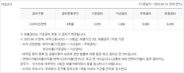 ▶ 대출 유의사항으로는