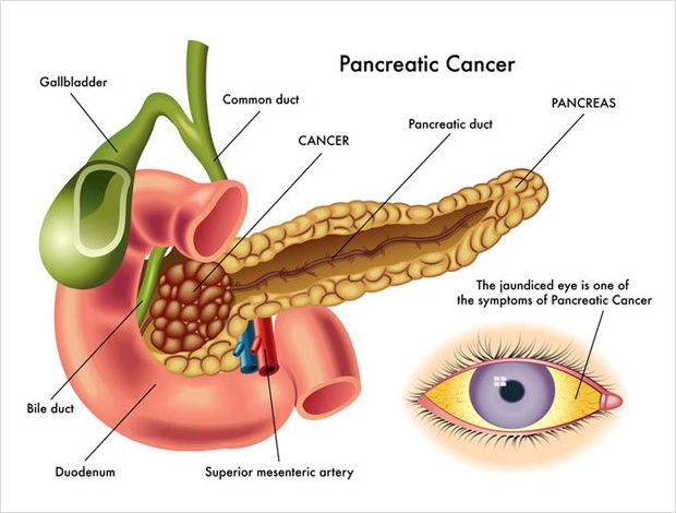 가로로 길게 놓여있는 췌장은 종양의 위치와 주위 장기로의 전이 정도에 따라 증상이 다르게 나타난다고 합니다. 먼저 췌장의 머리 쪽에 암이 생겼을 경우 간에서 담즙이 내려오는 길을 막기 때문에 초기에 황달이 생길 수 있다고 합니다.