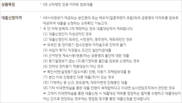 ▶ 국민은행 아파트담보대출 신청 대상 자격 조건은 다음과 같다고 합니다.