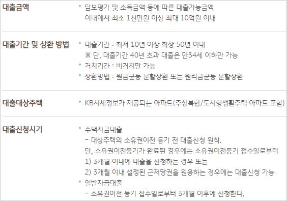 KB시세정보가 제공되는 본인명의 또는 배우자(결혼예정자 포함)와의 공동명의 아파트를 담보로 제공하여 대출을 신청하는 소득확인이 가능한 분이라고 합니다.