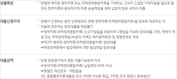은행이 인정하는 본인 단독명의의 국민은행 청약저축(주택청약종합저축)을 담보로 제공하는 분이라고 합니다. 다만 다음과 같은 경우에는 담보대출 취급이 불가하다고 합니다.