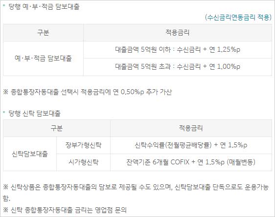 ▶ 대출 기간은 예금 부금 적금 담보대출은 해당 예금 부금 적금 만기일 이내(1년 단위로 자동기한 연장)이며 청약예금, 청약부금 담보대출은 1년 이내(예금 해지할 때까지 자동기한연장), 신탁 담보대출은 1년(신탁 해지할 때까지 1년 단위로 자동기한연장)이라고 합니다.