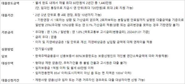 ▶ 상환방법은 만기일시상환방식이며 ▶ 담보는 한국주택금융공사 신용보증서 80%(보증한도는 보증신청인의 개인별 연간소득금액에 따라 차등적용)라고 합니다.