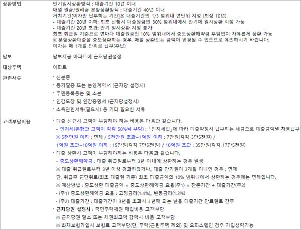 대출금액의 10%내 중도상환해약금 없이 상환이 가능한 대출 상품인 우리은행 아파트담보대출 신청 대상 자격 조건은 아파트를 담보(분양아파트 후취담보 포함)로 제공하는 개인이라고 합니다.