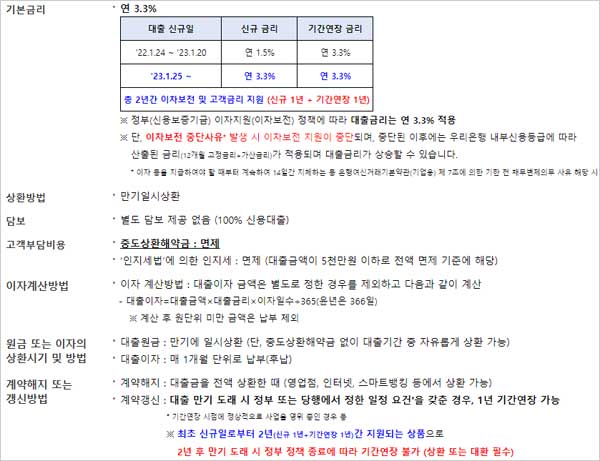 우리은행 희망플러스 신용대출 상품은 최초 신규일로부터 2년(신규 1년+기간연장 1년)간 지원되는 상품으로 2년 후 만기 도래 시 정부 정책 종료에 따라 기간 연장이 불가 (상환 또는 대환 필수)하다고 합니다.