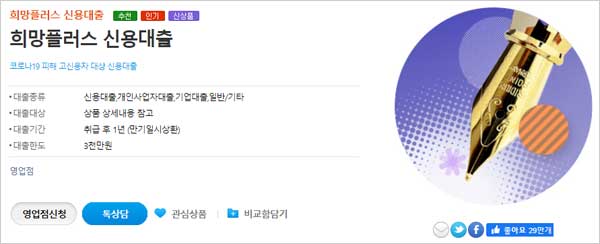 우리은행 희망플러스 신용대출 상품은 우리은행 홈페이지에서 소개하고 있으며 코로나19 피해 고신용자 대상 신용대출 상품으로서 소상공인 지원 이차보전대출 상품이라고 합니다.