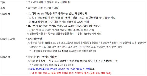 - 기존 영세 소상공인 이차보전대출 상환 조건으로 신청이 가능합니다. 다만 신용보증기금에서 정하는 취급제한업종 영위 기업은 대출대상에서 제외된다고 합니다.
