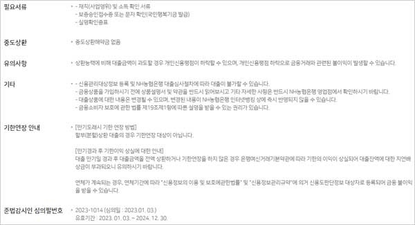 - 신용관리대상정보 등록 및 NH농협은행 대출심사절차에 따라 대출이 불가할 수 있다고 해요.