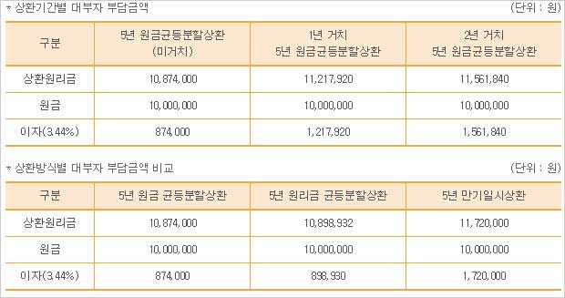 참고로 상환기간별 대부자 부담금액 및 상환방식별 대부자 부담금액은 다음과 같다고 해요.