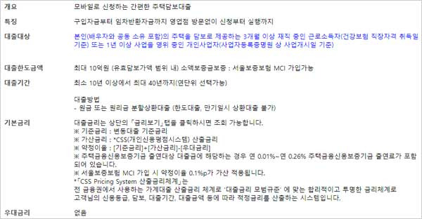 - 대출가능여부 및 최종대출금액은 고객신용도, 소득, 담보방식, 보유중인 다른대출 등에 따라 달라질 수 있다고 합니다.