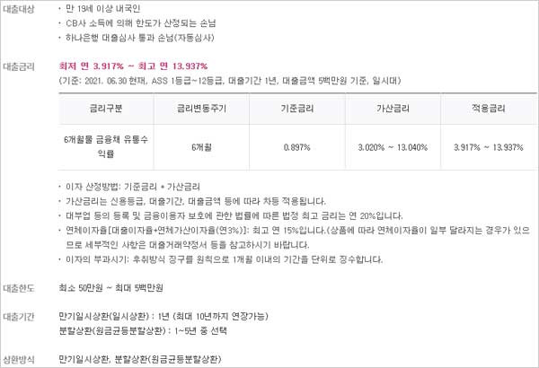 하나은행 핀크 생활비 대출 상품은 하나은행 홈페이지에서 소개하고 있으며 신청 대상 자격 조건은 만 19세 이상 내국인, CB사 소득에 의해 한도가 산정되는 분, 하나은행 대출심사를 통과한 분(자동심사)이라고 합니다.