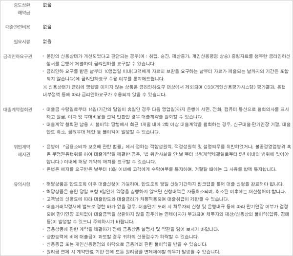 ▶ 대출 유의사항으로는