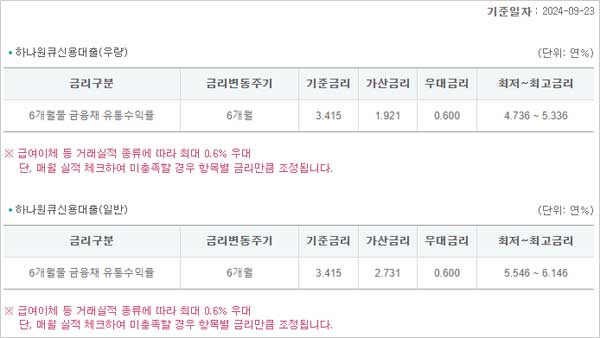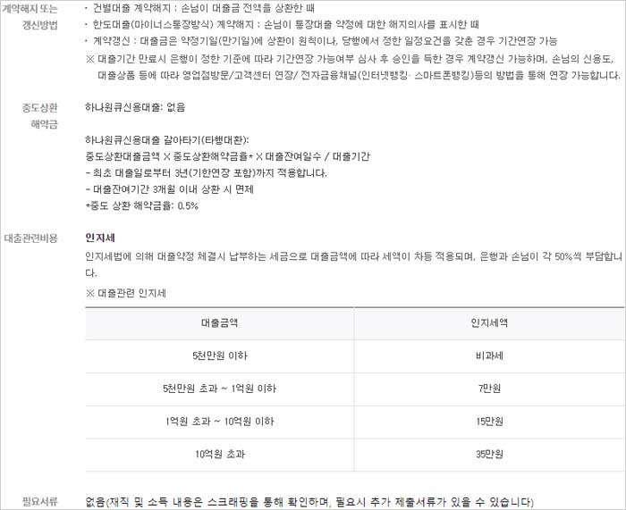직장인 하나은행 신용대출 조건 자격 신청대상 및 한도 금액, 금리 이자 이율, 필요서류, 한도 금액, 담보, 중도상환수수료, 기간, 상환방법, 대출 유의사항 등보다 자세한 내용은 상품설명서를 참조하거나, 하나은행 고객센터(1599-2222) 또는 영업점, 하나은행 홈페이지 신용대출 카테고리 내 하나원큐 신용대출 항목을 통해 확인 할 수 있다고 합니다.