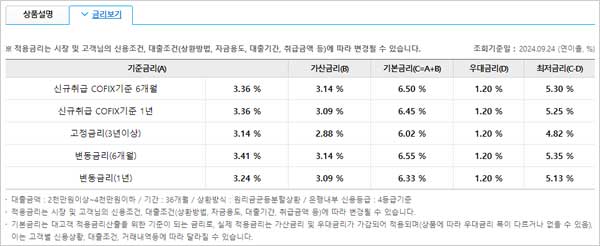 참고로 우리은행 중고차대출 상품은 금리인하 요구권 및 대출계약 철회권, 위법계약 해지권, 자료열람요구권 신청이 가능한 상품이라고 하며 금리 이자 이율 및 관련 내용은 다음과 같다고 합니다.