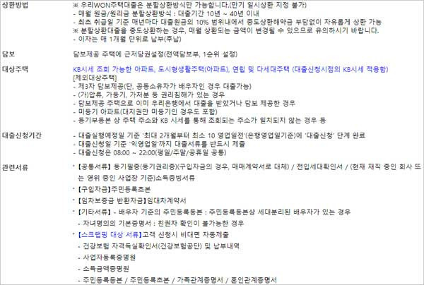 우리은행 주택담보대출 서류 및 우리은행 주택담보대출 조건 신청대상 알아보기