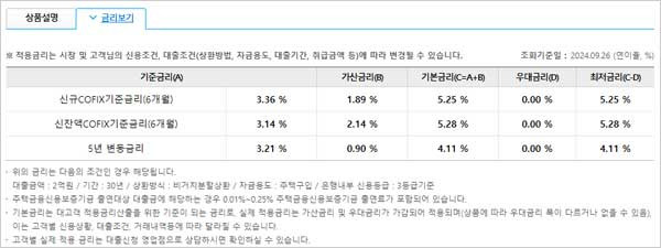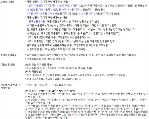 - 대출가능여부 및 최종대출금액은 고객신용도, 소득, 담보방식, 보유중인 다른대출 등에 따라 달라질 수 있다고 합니다.