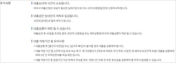 ▶ 대출 유의사항으로는