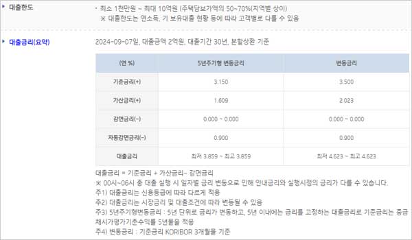 - 대출취급이 부적정한 경우(연체금 보유, 개인신용평점 등 낮음) 대출이 제한될 수 있다고 합니다.
