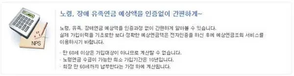 ▶ 이 방법은 노령 및 장애 유족연금 예상액을 인증과정 없이 간편하게 확인할 수 있는 장점이 있다고 해요.