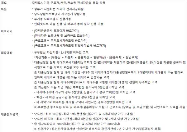 ▣ 대출신청일 현재 세대주로서 대출대상주택에 전(월)세계약을 체결하고 전(월)세보증금의 5%이상을 지불한 근로자 및 서민으로 다음 각호의 요건을 모두 구비한 분이라고 합니다.