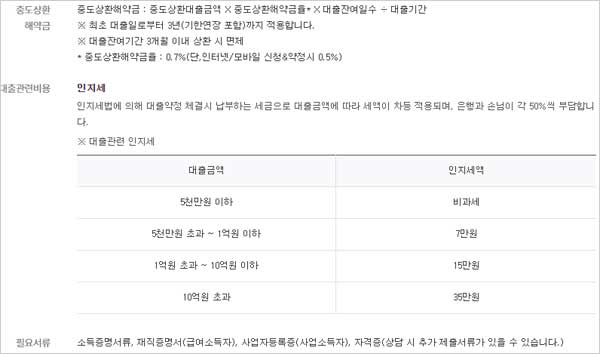▶ 대출관련비용으로서는 인지세가 있는데요. 인지세법에 의해 대출약정 체결시 납부하는 세금으로 대출금액에 따라 세액이 차등 적용되며, 은행과 고객이 각 50%씩 부담한다고 해요.