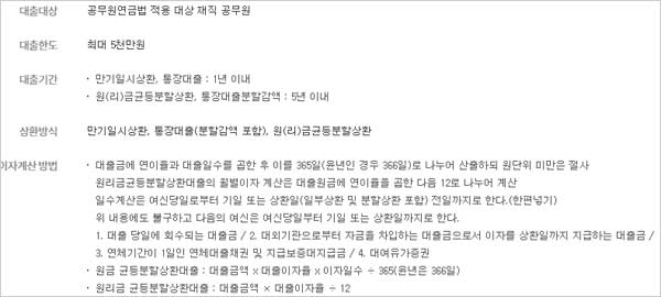 ▶ 최대 5천만원까지 대출이 가능한 하나은행 공무원 가계자금대출 신청 대상 자격 조건은 공무원연금법 적용 대상 재직 공무원이라고 해요.