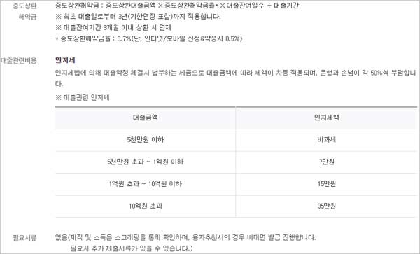 최초 대출일로부터 3년(기한연장 포함)까지 적용하구요. 대출잔여기간 3개월 이내 상환 시 면제라고 해요.