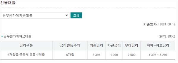 ▶ 하나은행 공무원 가계자금대출 금리 이자 이율은 다음과 같다고 하는데요.대출기간 1년, 하나은행 내부 신용등급 3등급인 분에게 적용하는 금리라고 해요. 다만 보다 정확한 금리는 홈페이지를 통해 확인 할 수 있다고 해요.