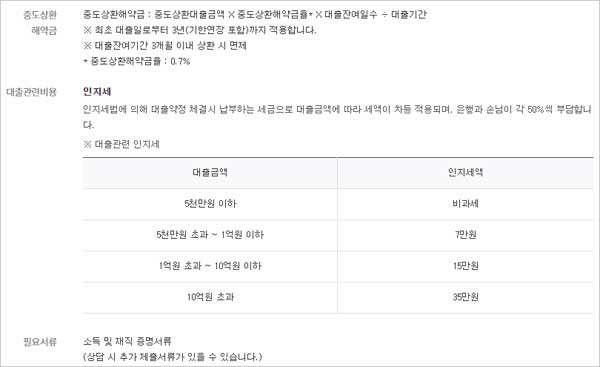 ▶ 대출 유의사항으로는