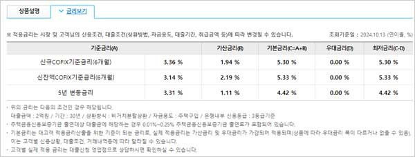 - 자금조달비용의 상승 및 금융당국의 정책변화 등 금융시장 변화가 있을 경우 대출금리, 대출한도 등 대출조건이 변경될 수 있다고 합니다.