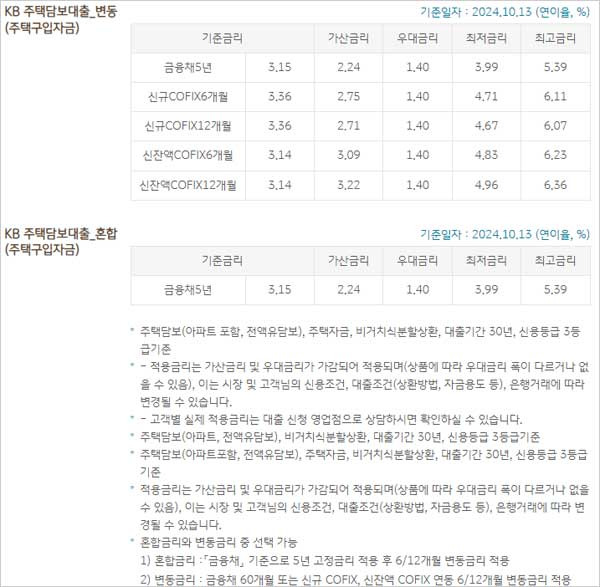 참고로 국민은행 주택담보대출 상품은 금리인하 요구권 신청 및 대출계약 철회권, 위법계약 해지권 신청이 가능하다고 하며 국민은행 주택담보대출 금리 이자 이율은 다음과 같다고 합니다.