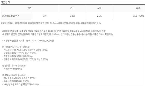 ▶ 농협 주택담보대출 금리비교 고정금리 변동금리 이자 이율은 다음과 같다고 합니다.