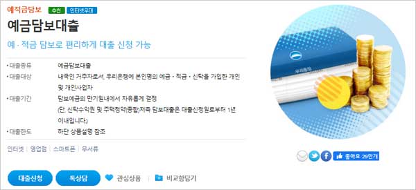 내국인 거주자로서, 우리은행에 본인명의 예금 및 적금 신탁을 가입한 개인 및 개인사업자라가 신청대상 자격조건이 된다고 합니다. 다만 미성년자, 신용관리대상정보 등록, 특수채권, 연체여신 보유 중인 고객은 대상에서 제외된다고 합니다.