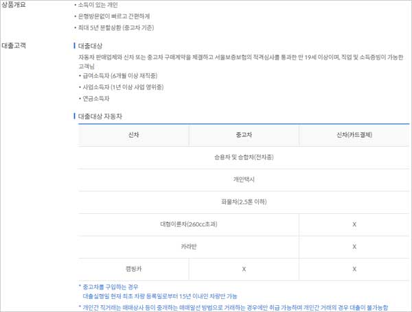 ▶ 자동차 판매업체와 중고차 구매계약을 체결하고 서울보증보험의 적격심사를 통과한 만 19세 이상이며, 직업 및 소득증빙이 가능한 분이 신한은행 중고자동차 대출 신청대상 자격조건이 된다고 합니다.