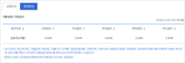 ▶ 신한은행 중고자동차 대출 금리 이자 이율은 다음과 같다고 합니다.