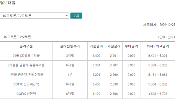 - 중고차의 경우 최근 6개월 이내 1Q오토론 대출이 취급된 동일차량 구매자금 신청시 진행이 불가능하다고 합니다.
