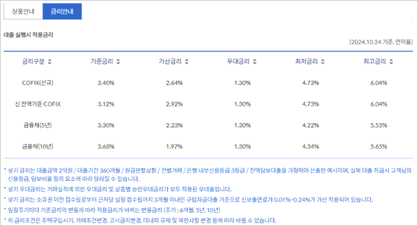 - 대출금리는 차주 신용도별 차등 적용되며 대출 이자 미납 및 대출 만기 후 미상환시에는 여신거래 약정에서 정한 기간별 연체이율이 적용되고 신용정보관리대상 등록 등의 불이익을 받을 수 있다고 합니다.