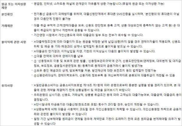 ▶ 대출 유의사항으로는