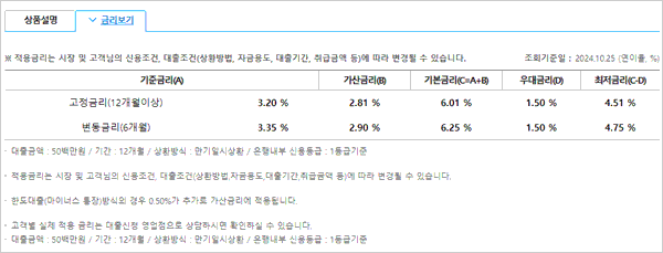 참고로 우리은행 직장인 신용대출 상품은 금리인하요구권, 대출계약철회권 및 위법계약해지권, 자료열람요구권 신청이 가능하며 금리 이자 이율 및 관련내용은 다음과 같다고 해요.