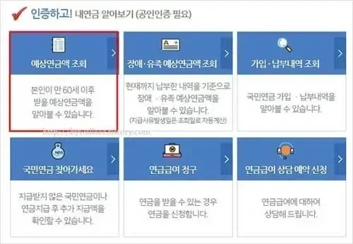 ▶ 이 방법은 노령 및 장애 유족연금 예상액을 인증과정 없이 간편하게 확인할 수 있는 장점이 있다고 해요.
