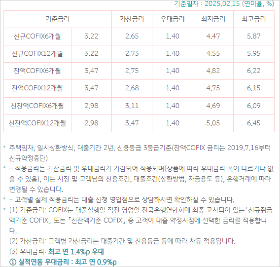 - 대출신청인이 신용도판단정보 등록자(신용회복지원 또는 배드뱅크 포함)이거나, 은행의 신용평가 결과 신용등급이 낮은 고객일 경우 대출이 제한될 수 있습니다.