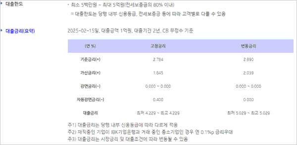 기업은행 전세자금대출 한도 금액은 최소 5백만원 ~ 최대 5억원(전세보증금의 80% 이내)이라고 하며. 대출기간은 3개월 ~ 3년 이내라고 합니다.